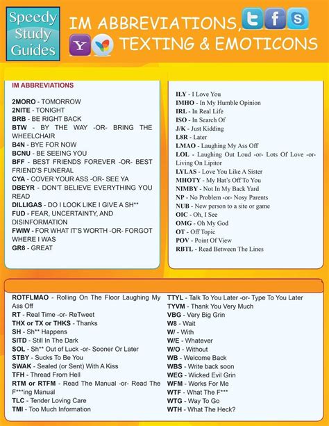 Read Instant Messaging Abbreviations Texting And Emoticons Quick Reference Guide Free eBooks PDF